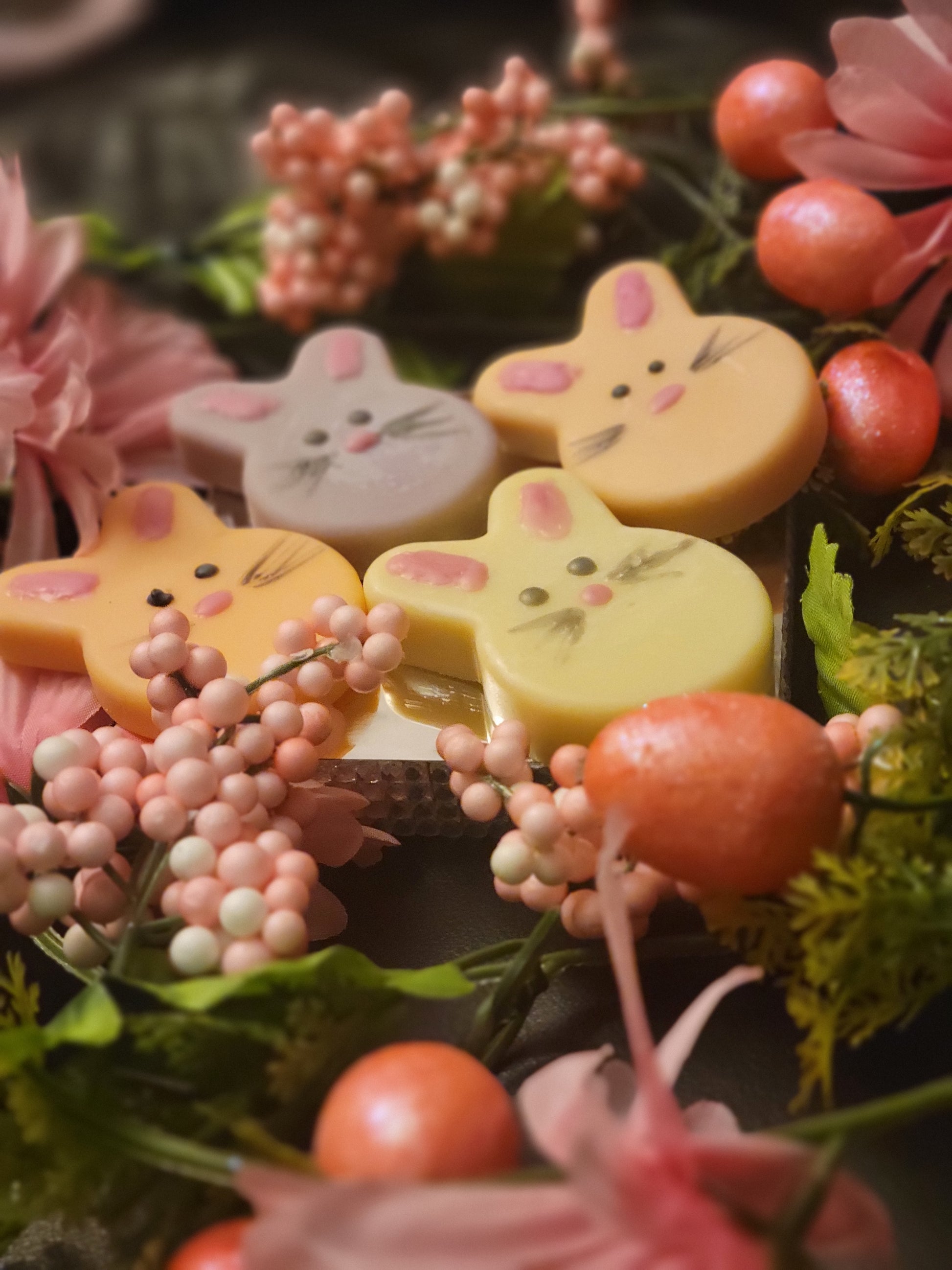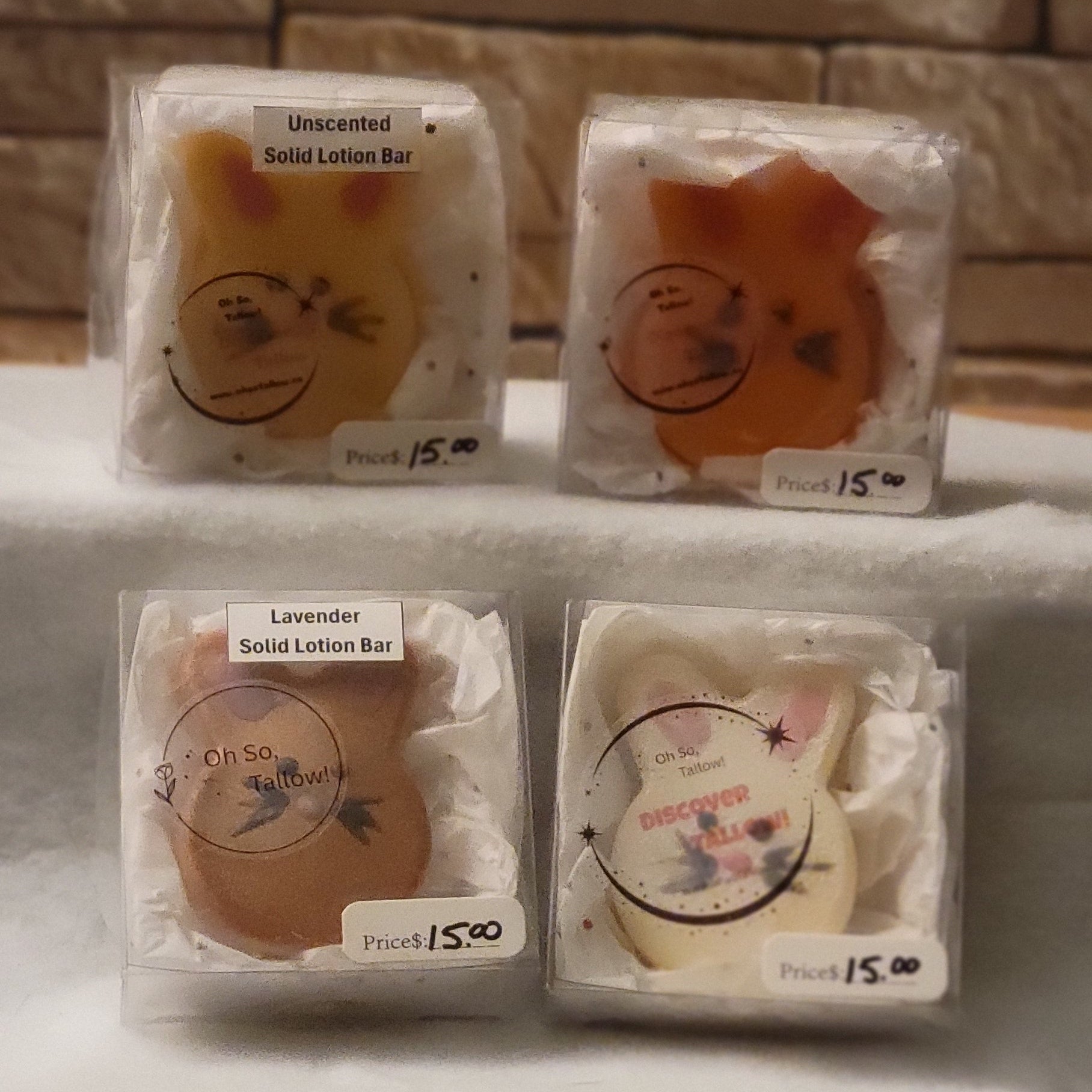 Enjoy a bunny melt! Comes in Vanilla, Lavender and Unscented. Rub on desired area, the bunny will warm up and slide smoothly over your skin. Leaving it soft.